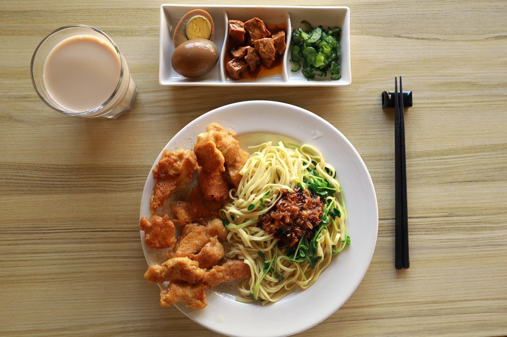 我點的是雞肉香蔥乾麵套餐+10元升級紅茶牛奶
