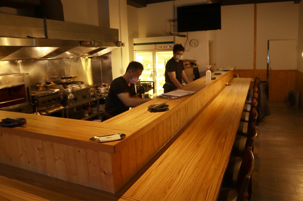 一進到店裡,可以看到L型長型吧檯,加上暖暖的黃光氛圍