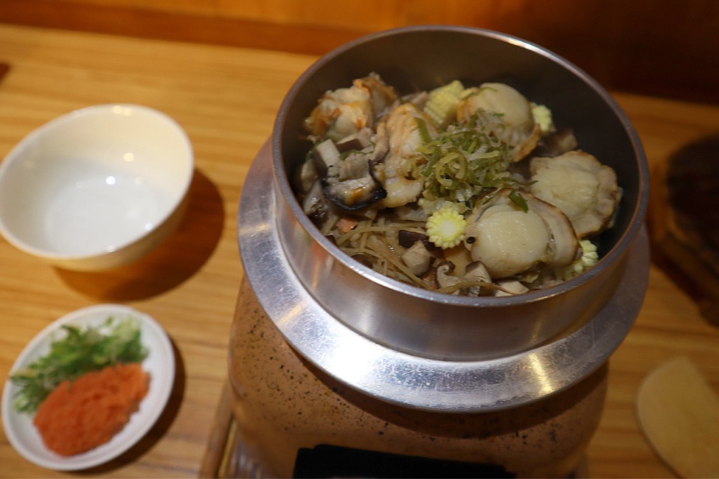 再來就看到滿滿的帆立貝、鮮蚵、玉米筍、牛蒡絲、香菇等配料