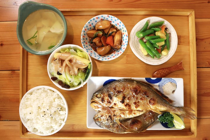 一上餐,看到烤得金黃的黃魚,像日式定食一樣,剖成一片。