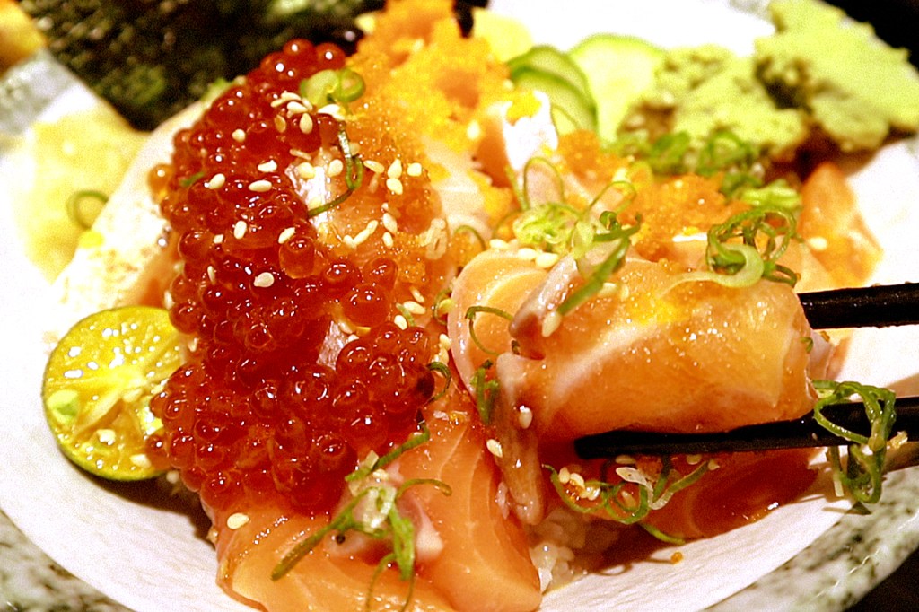 吃進一口都是滿滿魚脂香味,配合鹹甜鮭魚子
