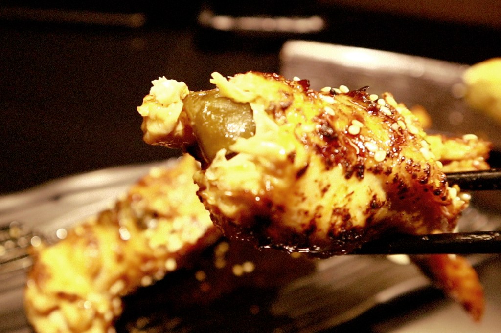 雞翅裡包了一整支剝皮辣椒,微微辣度中味了雞肉油脂