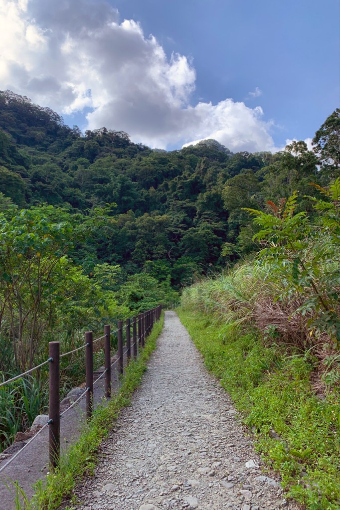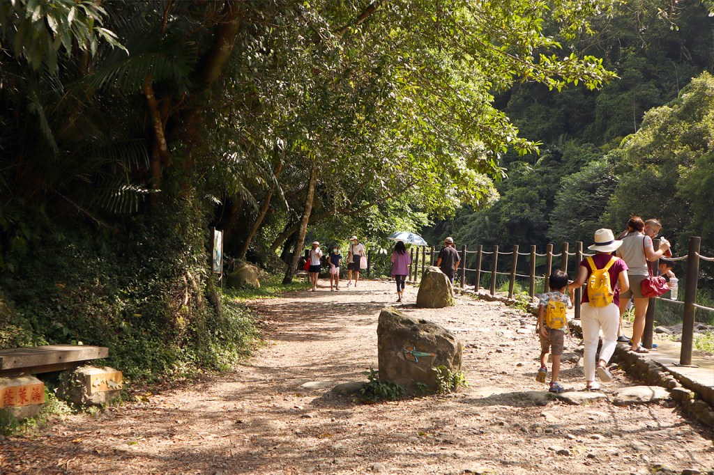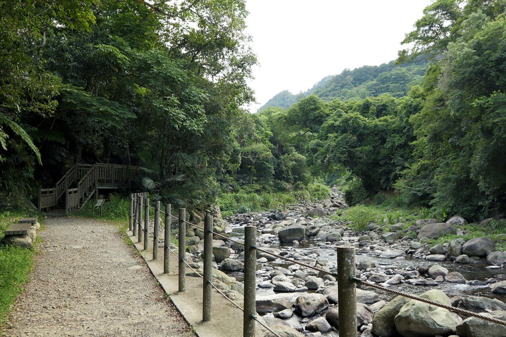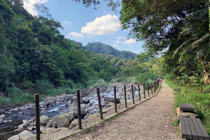 步道沿途幾乎都有樹蔭,旁邊就是蓬萊溪。