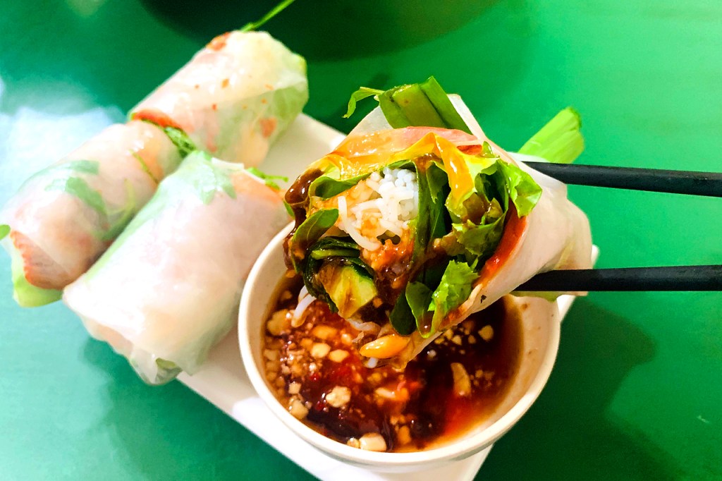 與一般生春券不同,他們是用叉燒肉取代蝦子
