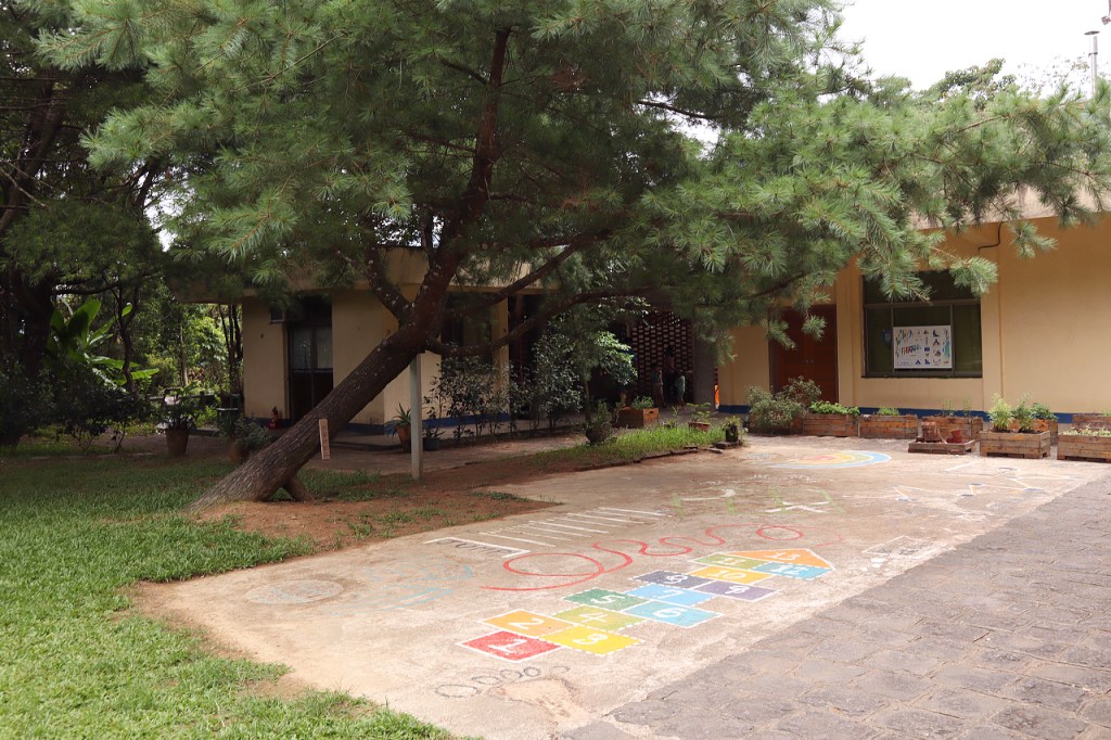 另一側樹下,還畫了跳格子、跳遠遊戲