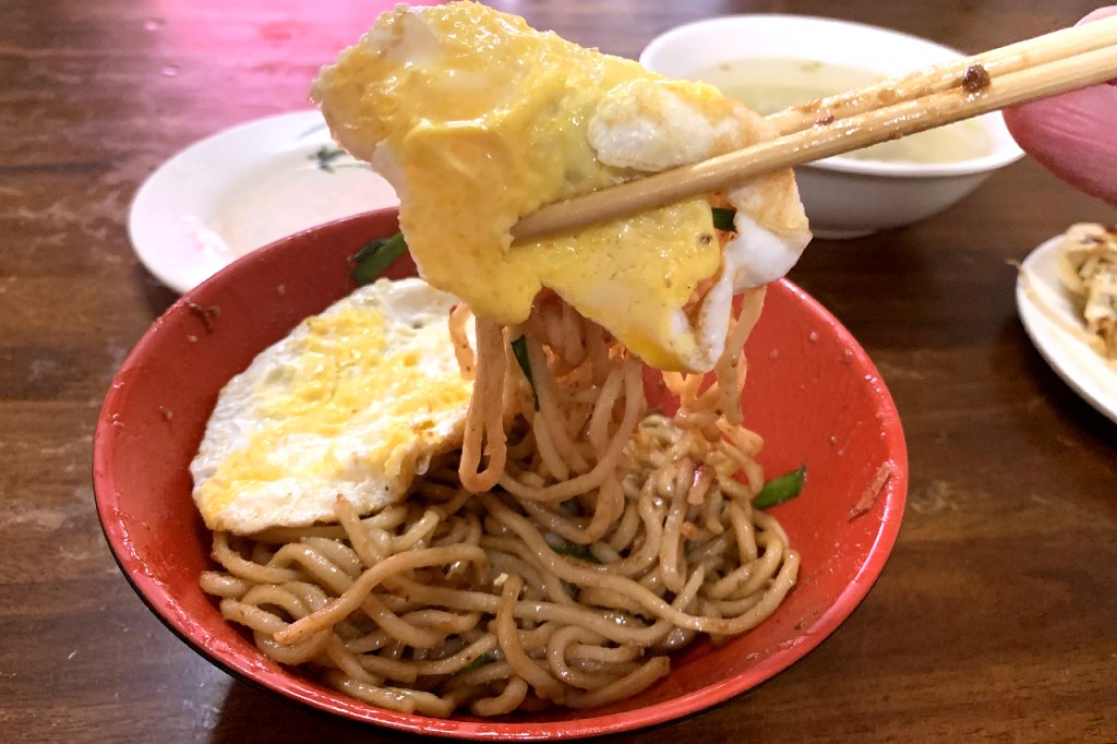 推薦加點荷包蛋(10元),軟嫩雞蛋包著甜鹹黃麵