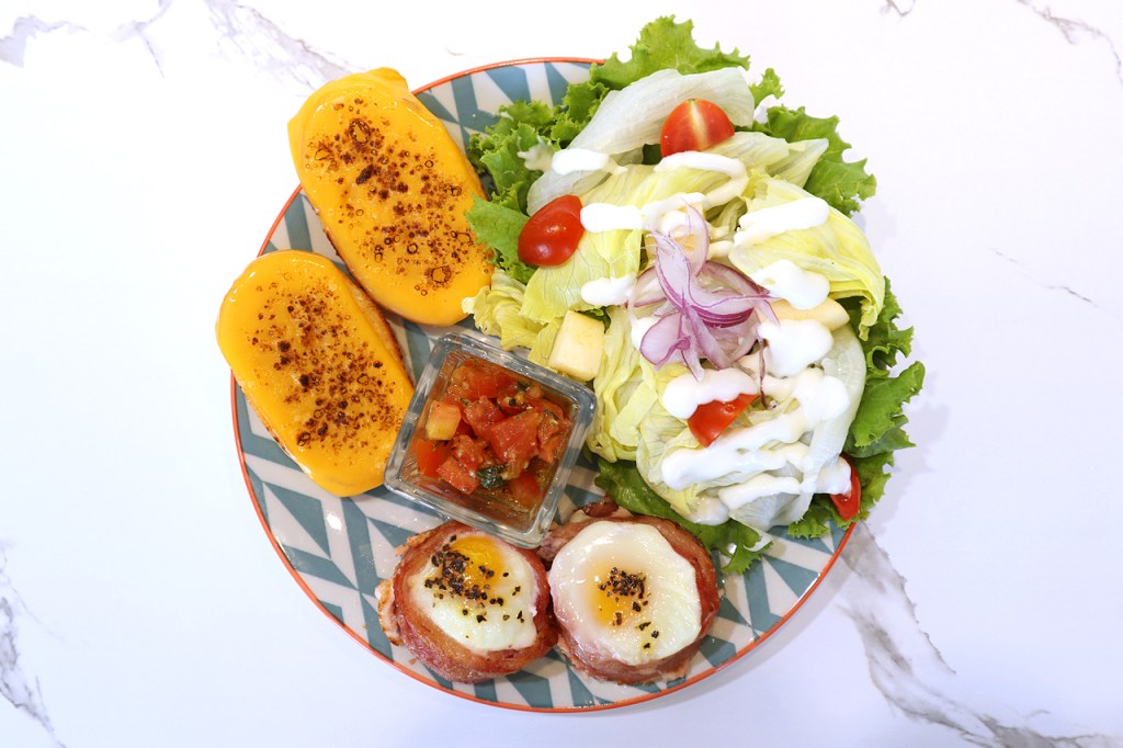 經典培根太陽蛋組合搭配分量十足優格沙拉