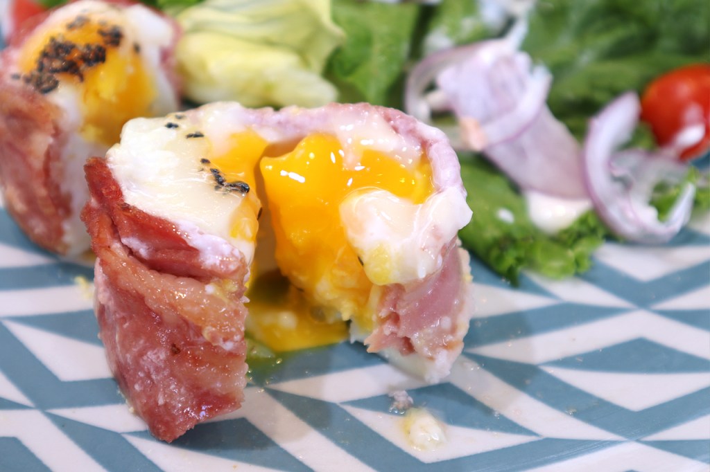 但培根太陽蛋的部份,則用另一種方式呈現。