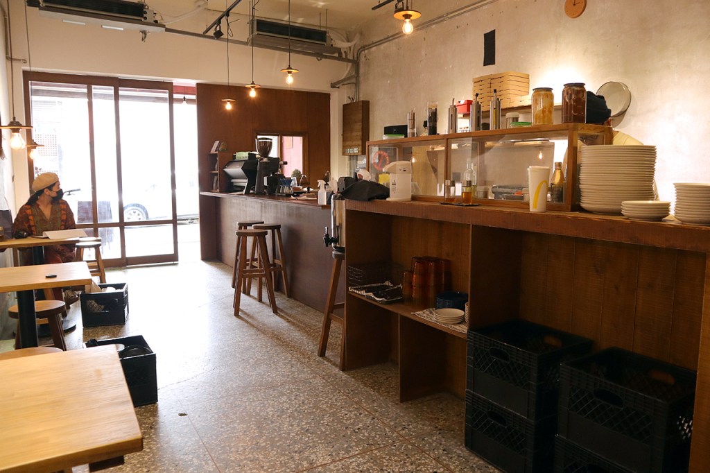 一樓的裝潢,保留了老宅獨有洗石子地板、水泥牆,加上極簡風格與深色木質吧檯,營造一種很舒服的氛圍;在用餐空間上,都盡可能保留寬敞舒服,自已非常喜歡二樓懶骨頭座位區,讓我滿想在這裡軟爛一整天的。