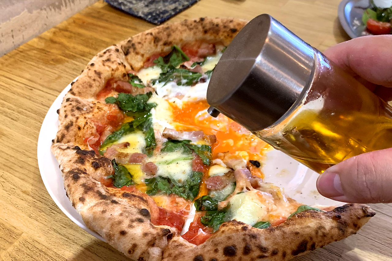餐點上的選擇以披蕯為主,鹹披薩都是經典拿坡里披薩口味,另外還有甜披薩、披薩餃、爐烤蔬菜;另外現在也有與桃園自烘豆咖啡品牌合作,所以不管是單純想喝杯好咖啡、還是想吃披薩解解口饞,都可以選擇。