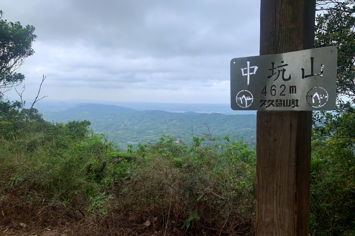 從觀日坪涼亭後方步道過來,就會到達步道的最高點小百岳-中坑山三角點(462m),真心有一種用散步的心情,然後不小心撿了一個小百岳。
