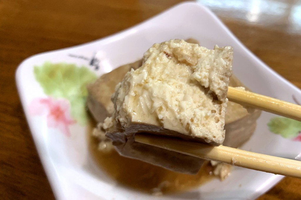 豆腐吃起來沒有外觀般的重口味,反而是滷汁的味道凸顯豆腐的豆香,且口感很綿密。