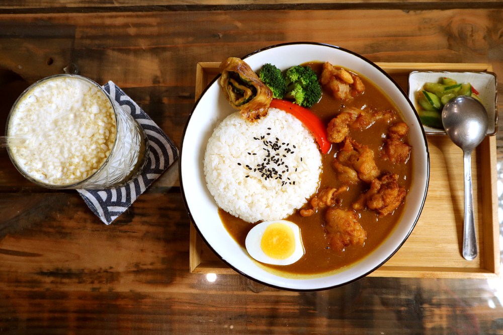 二訪點餐:唐揚雞肉甘口咖哩飯、日本焙茶那堤
