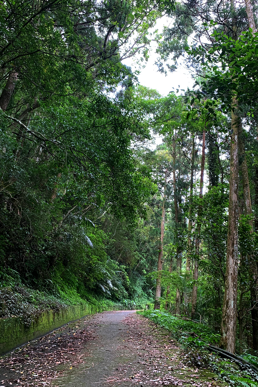 雖然前半段步道是1km長度的緩上坡,但林道都是水泥路面,所以走起來很輕鬆,可以用緩慢腳步,散步在森林之間。