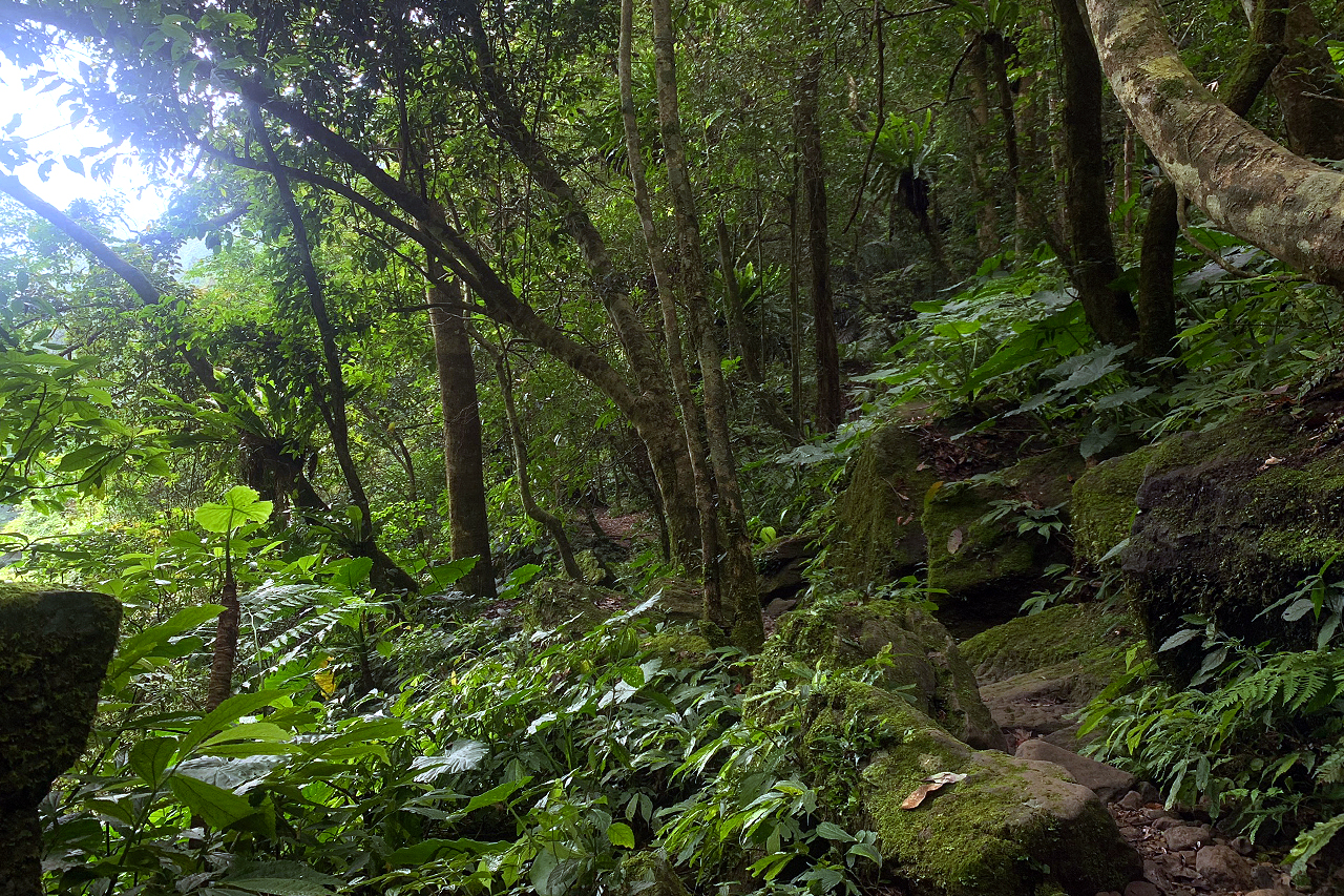 1.因為是穿越林木、溪谷,要穿著防滑效果好的鞋子,並攜帶登山杖。