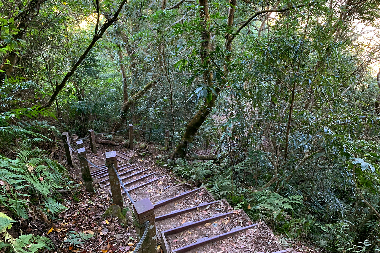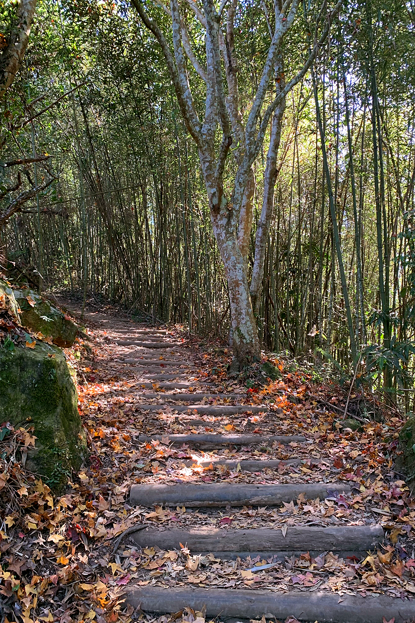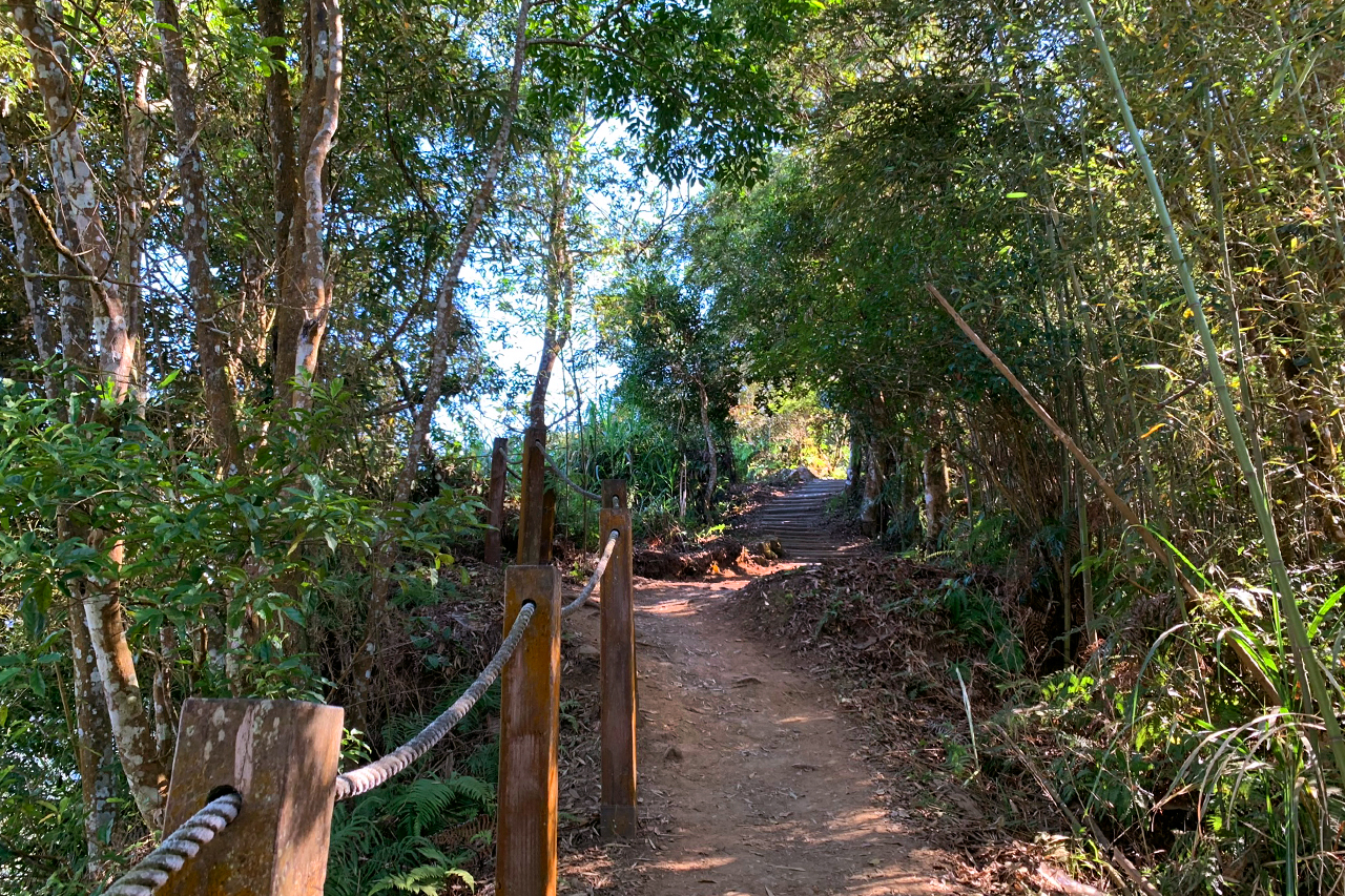 從入口處到細道邦山與馬那邦山入口交會處的500公尺步道,雖然有人工規劃石階,但因為日照少,加上沿途竹林、芒草遮蔽,所以石階都有偏潮溼的狀況,行走時還是要注意。