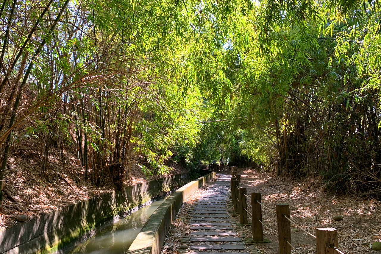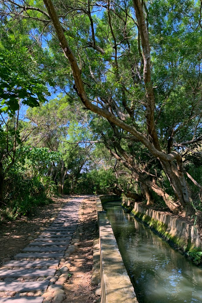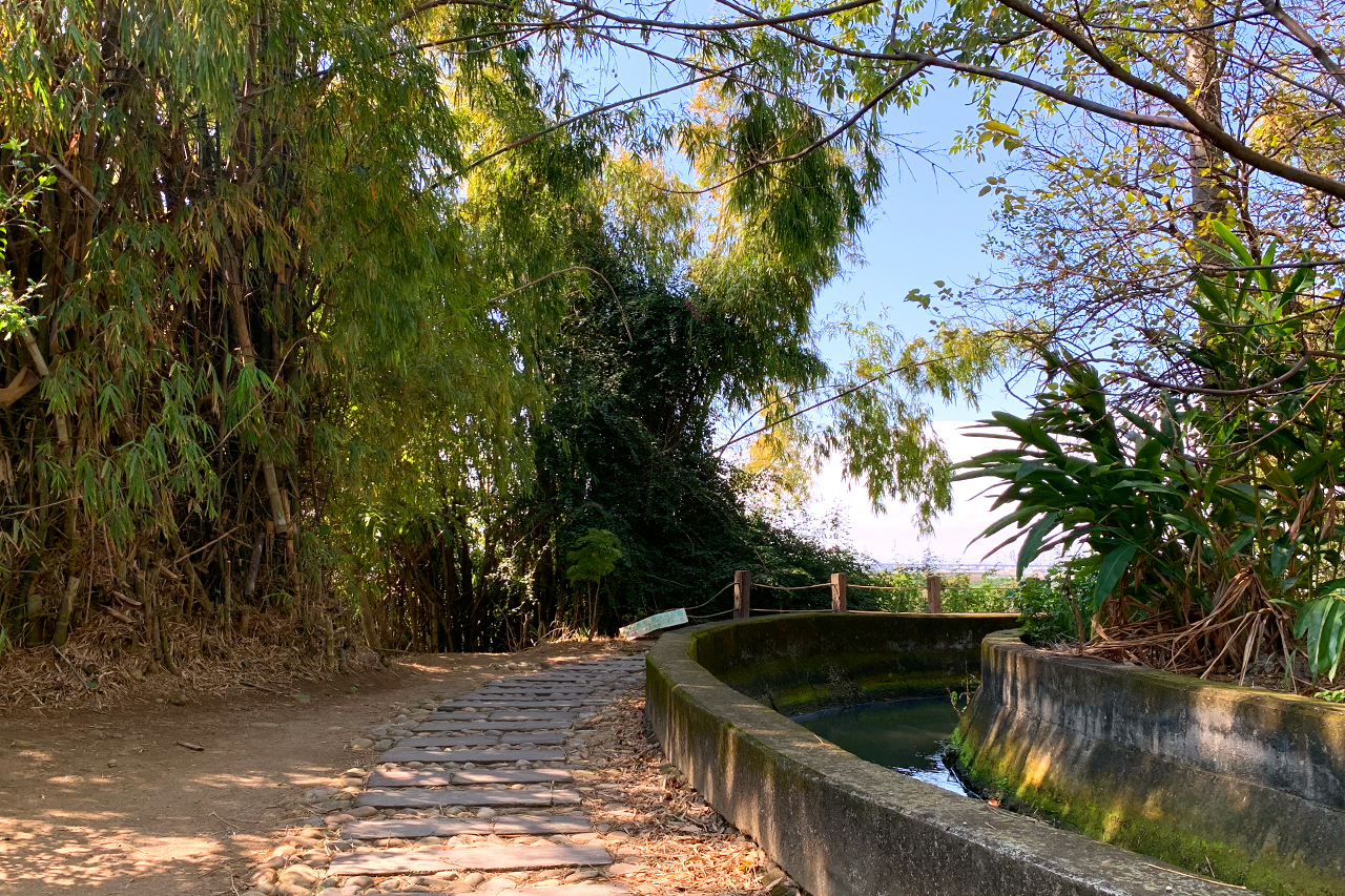雖然步道總長約3km,但規劃的非常舒服,沿水圳舖設的枕木步道,非常平緩好走,加上林蔭、竹林密佈步道兩側,走起來也是非常涼爽舒適,幾乎沒有辛苦的感覺。
