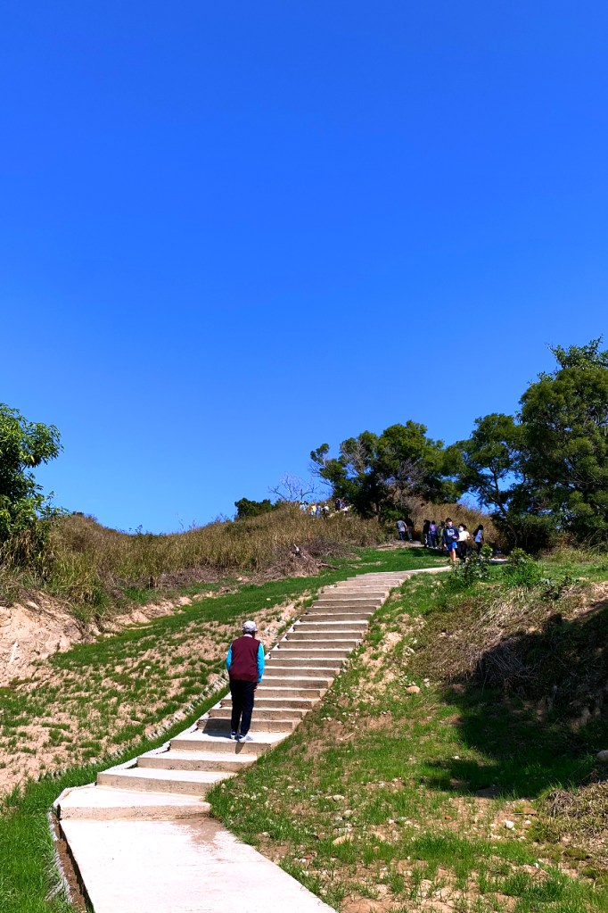 但後段坡道就略顯吃力,除了一段又一段的上坡,雖然有輪胎做成的階梯,但之間落差時大時小,走起來會比較吃力,若是傍晚視線較差的時段前來,則是更要注意腳下的狀況。