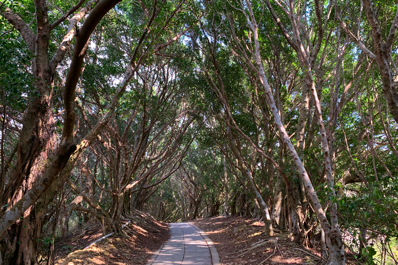 走入步道後,和剛剛萬城長城步道景色不一樣,一眼能將市景、藍天的海線風光盡收眼底;雖然步道是上上下下的狀況,但坡度還是很和緩。