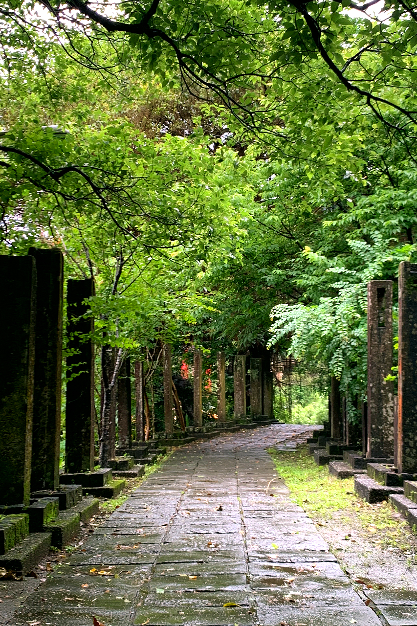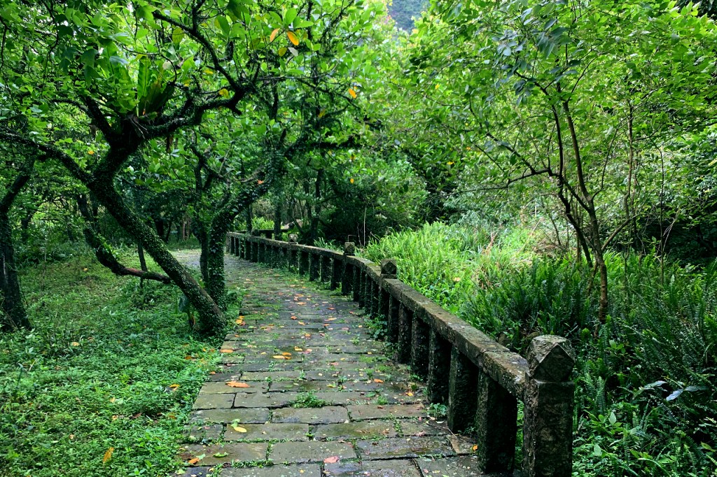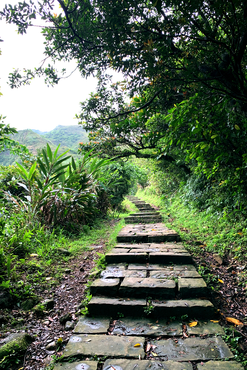 自已是走石階路線,但因為上午下雨,石階本身有些濕滑,行走就較為戰戰兢兢;另外步道中間點會有一處古道客棧,有提供販賣咖啡、食物,可以選擇在這休息一下。