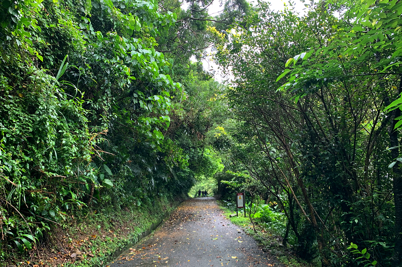 一直到草嶺古道的入口處前,路況上其實一路都是柏油、碎石路的大路狀態,坡度也不陡,行走在其間反而不像是在登山、健行的感覺,比較像是踏青散步的感覺。